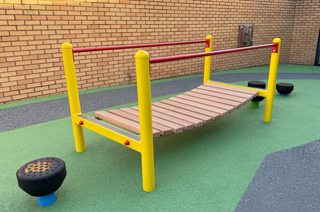 Design and installation of a steel low-level adventure trail to promote balance, coordination and inclusive movement.