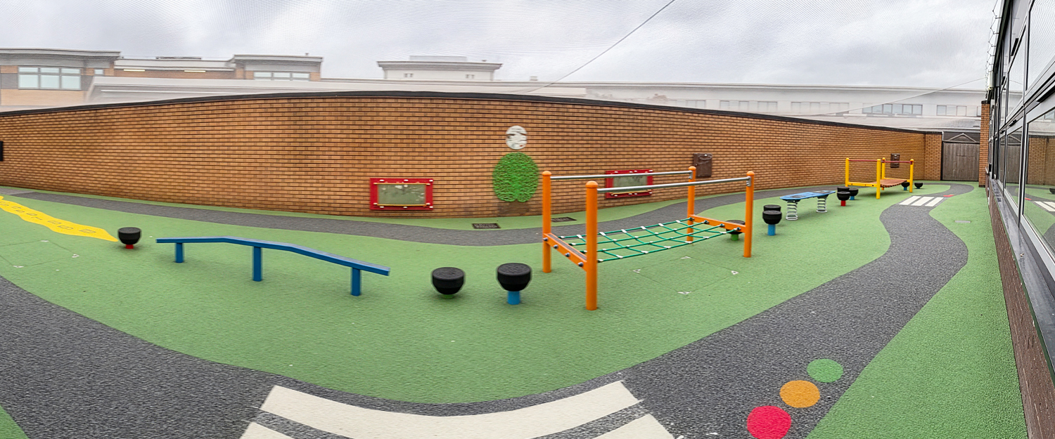 A vibrant, inclusive area that supports social interaction and movement for pupils of varying abilities
